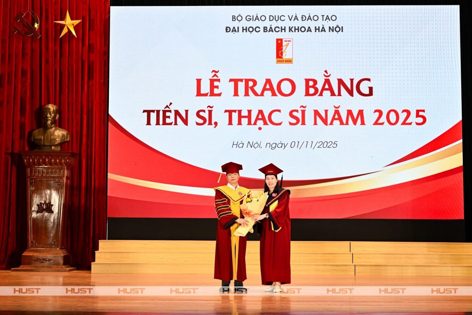 This morning (November 1), Hanoi University of Science and Technology (HUST) solemnly held the Degree Awarding Ceremony for 38 new Doctors and 284 new Masters who completed their training programs in 2025. The ceremony marks a milestone recognizing the achievements of the postgraduate students' journey of diligent study and persistent research.