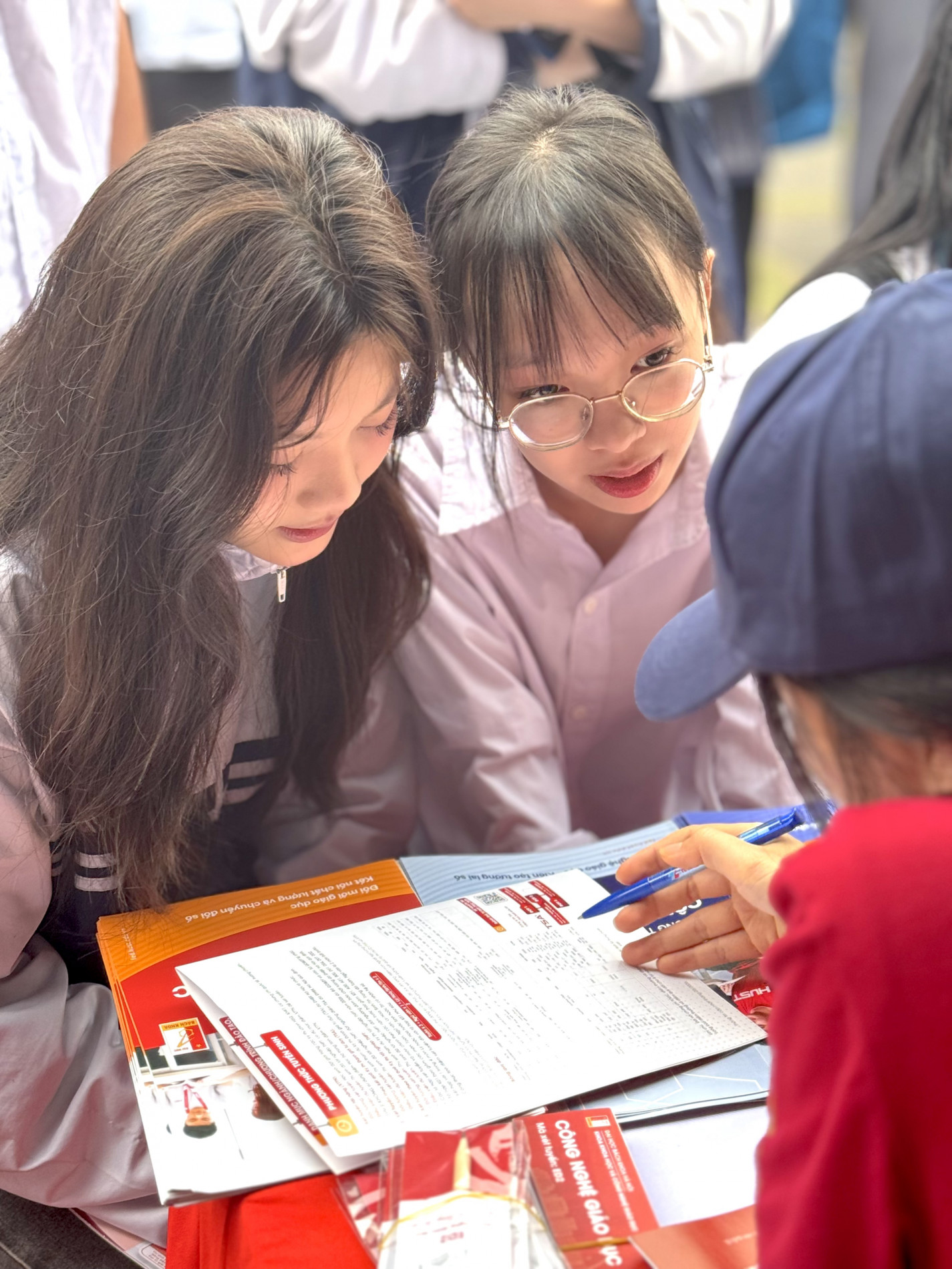 Trước những câu hỏi của học sinh và những suy nghĩ sâu sắc của phụ huynh luôn hướng đến con mình, các thầy cô giáo Đại học Bách khoa Hà Nội giải thích đầy đủ và tận tình, khiến những cái cau mày khi đến biến thành gương mặt rạng rỡ khi rời đi.