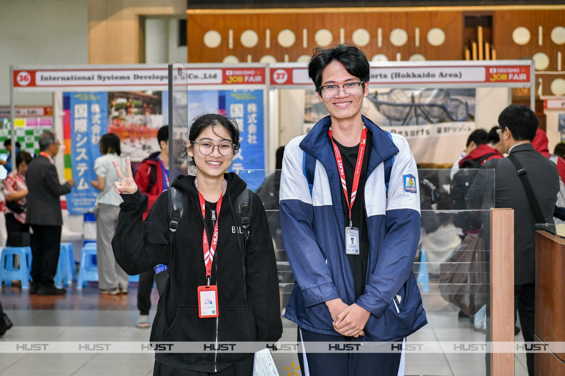 Có mặt tại sự kiện từ đúng 8 giờ sáng, Trần Minh Dương, sinh viên K69 ngành Công nghệ Thông tin Việt - Pháp, Trường Công nghệ Thông tin và Truyền thông, Đại học Bách khoa Hà Nội, tự tin khoác trên mình bộ đồng phục Nhà trường, chia sẻ: “Biết về Sekisho Job Fair 2025 thông qua website của Đại học, sáng nay, tôi đã dậy sớm, chuẩn bị kỹ càng để đến gặp các doanh nghiệp Nhật Bản. Tuy học tiếng Pháp nhưng tôi rất đam mê văn hóa Nhật, tôi mong có thể tăng thêm nhiều cơ hội việc làm cho bản thân trong tương lai.”
