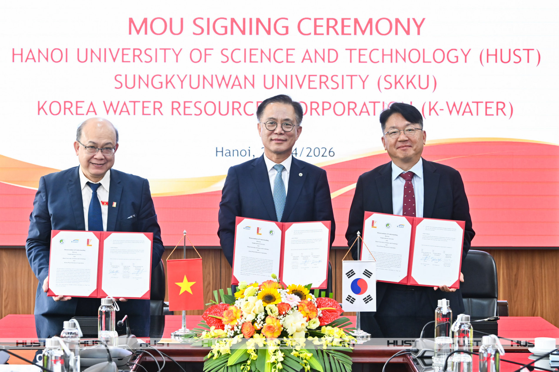 Đại học Bách khoa Hà Nội ký biên bản ghi nhớ hợp tác với Đại học Sungkyungwan (Hàn Quốc) và Tổng công ty Tài nguyên Nước Hàn Quốc (K-Water) ngày 22/4