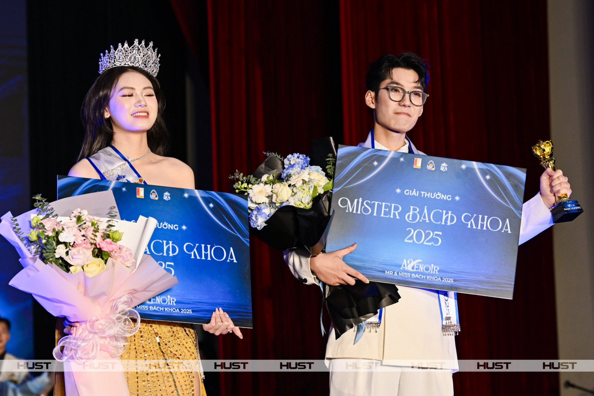 Với phong thái tự tin, bản lĩnh sân khấu cùng sự thể hiện toàn diện qua các phần thi, Nguyễn Lê Thắng – sinh viên Khoa Toán – Tin học đã được xướng tên ở ngôi vị Mr Bách khoa 2025 và Dương Ngọc Huyền – sinh viên Trường Hóa và Khoa học Sự sống đã chinh phục Ban Giám khảo và khán giả để trở thành Miss Bách khoa 2025.
