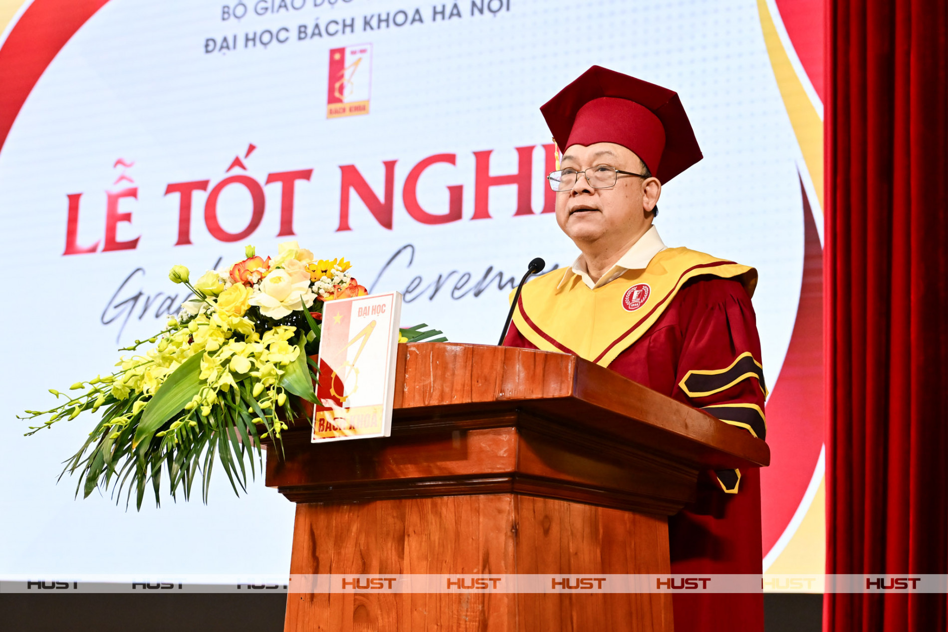 “Khoác lên mình tấm áo tốt nghiệp hôm nay, các em có quyền tự hào về thành quả mà mình đạt được. Đó là kết tinh của trí tuệ, của ý chí kiên cường và sự nỗ lực không ngừng nghỉ. Từ giây phút này, các em chính thức trở thành kỹ sư, cử nhân mang danh hiệu Đại học Bách khoa Hà Nội – niềm tự hào của mái trường và của chính các em” - PGS. Huỳnh Quyết Thắng chia sẻ.
