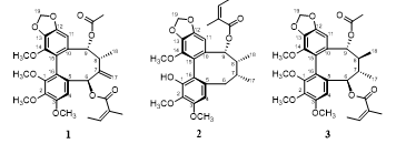 Tóm tắt: Sáng chế đề cập đến các hợp chất dibenzocyclooctadien lignan có tác dụng kháng viêm, bao gồm kasuracin A có công thức 1, angeloyl-binankadsurin A có công thức 2 và interiotherin C có công thức 3 từ lá cây Na rừng (Kadsura coccinea (Lem.) A. C. Smith, Schisandraceae).