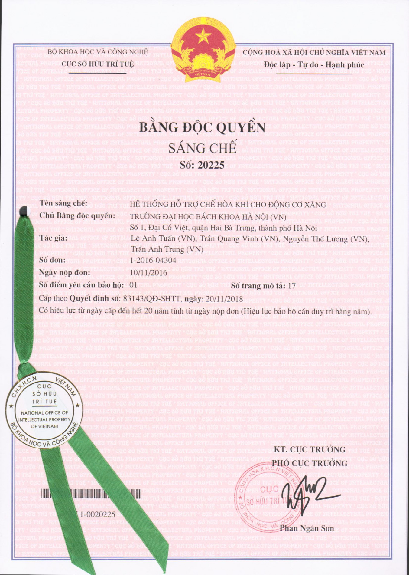 Ngày cấp: 20/11/2018
