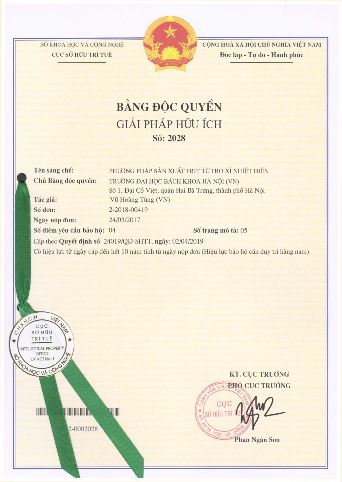 Ngày cấp: 02/04/2019