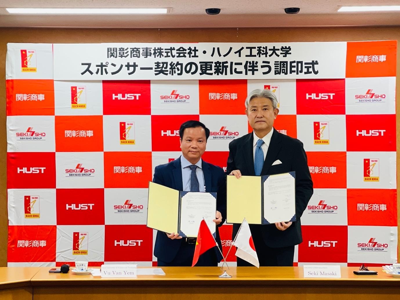 GS. Vũ Văn Yêm (trái) – Phó Giám đốc Đại học Bách khoa Hà Nội và ông Masaki Seki - Tổng Giám đốc Sekisho ký hợp đồng tài trợ 2026.