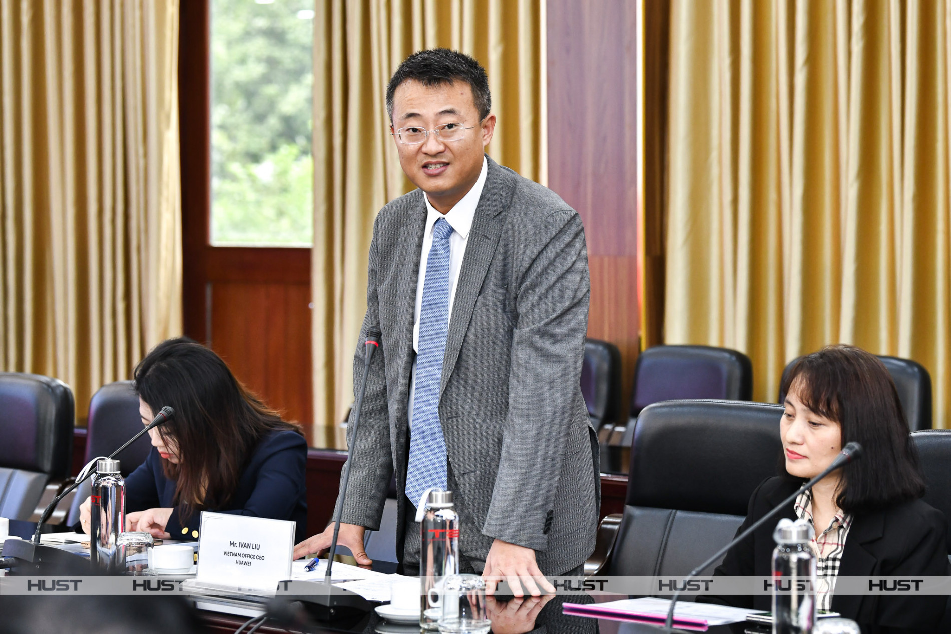 Ông Ivan Liu, Giám đốc điều hành Huawei Vietnam phát biểu tại buổi lễ: "Chúng tôi hy vọng hợp tác này sẽ thắt chặt thêm tình hữu nghị giữa chúng ta. Huawei cam kết sẽ luôn hỗ trợ Nhà trường, mở ra nhiều cơ hội phát triển cho giảng viên và sinh viên Bách khoa Hà Nội. Chúng tôi tin các bạn sẽ luôn giữ vững vị trí là đại học hàng đầu Việt Nam về khoa học và công nghệ!"