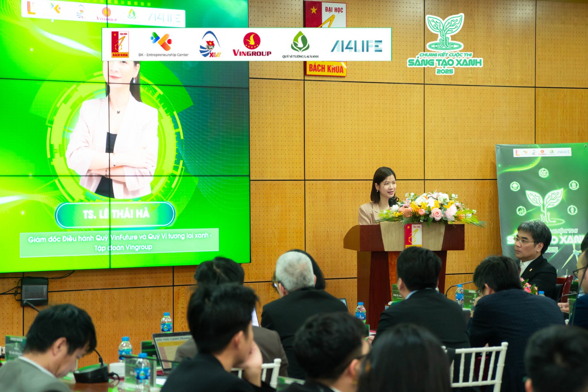 Tại buổi lễ, TS. Lê Thái Hà - Đại diện Quỹ Vì Tương Lai Xanh đã có bài phát biểu truyền cảm hứng mạnh mẽ:"Tương lai xanh không nằm trên những bản báo cáo, nó nằm trong chính tư duy dám nghĩ - dám làm của các bạn trẻ ngồi đây. Quỹ cam kết sẽ là bệ phóng vững chắc để những sáng kiến này không chỉ dừng lại ở mô hình thí nghiệm, mà phải được thương mại hóa, được ứng dụng và tạo ra tác động thực tế, góp phần đưa Việt Nam tiến nhanh hơn tới mục tiêu phát thải ròng bằng '0' ".