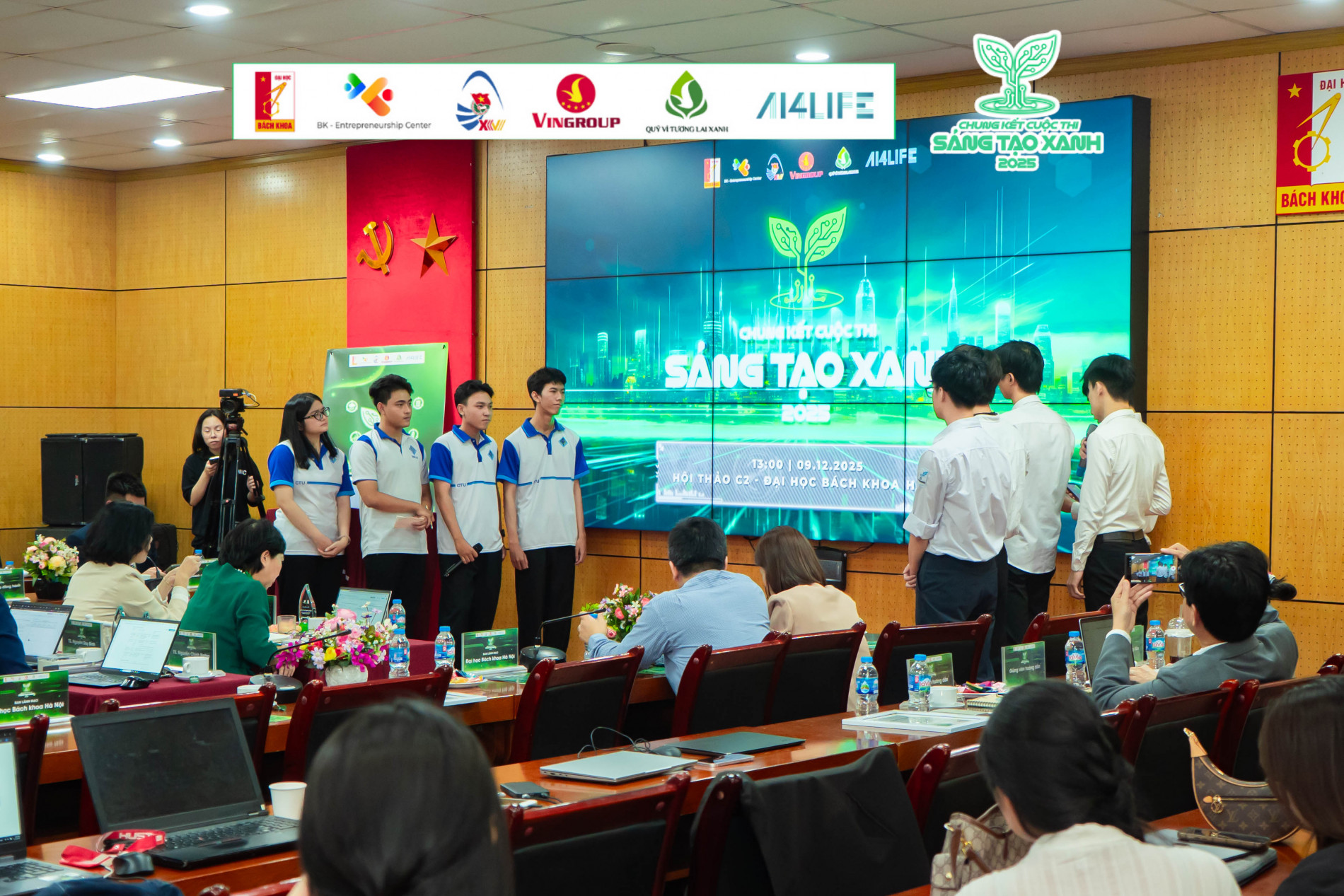 Chung kết Sáng tạo xanh 2025 thực sự là một "bữa tiệc" công nghệ đa sắc màu, nơi trí tuệ nhân tạo (AI), vật liệu mới và kinh tế tuần hoàn cùng tỏa sáng. 5 đội thi đã cống hiến những màn thuyết trình và phản biện nảy lửa, thuyết phục hoàn toàn Hội đồng giám khảo khó tính nhất.