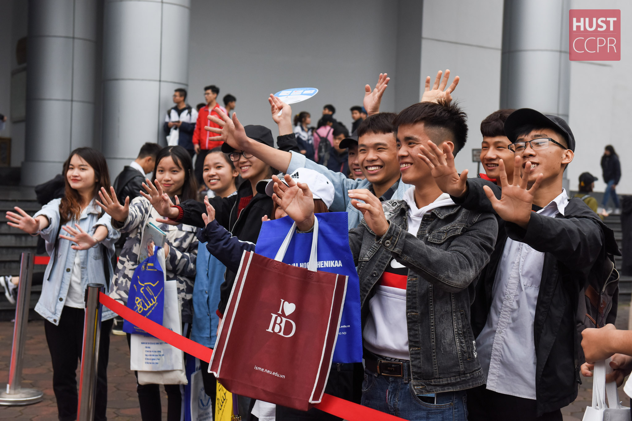 Học sinh vui vẻ "check - in" tại Trường ĐHBK Hà Nội