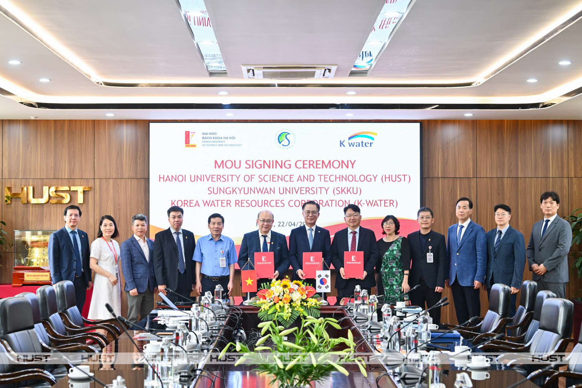 Đại học Bách khoa Hà Nội ký biên bản ghi nhớ hợp tác với Đại học Sungkyungwan (Hàn Quốc) và Tổng công ty Tài nguyên Nước Hàn Quốc (K-Water) ngày 22/4