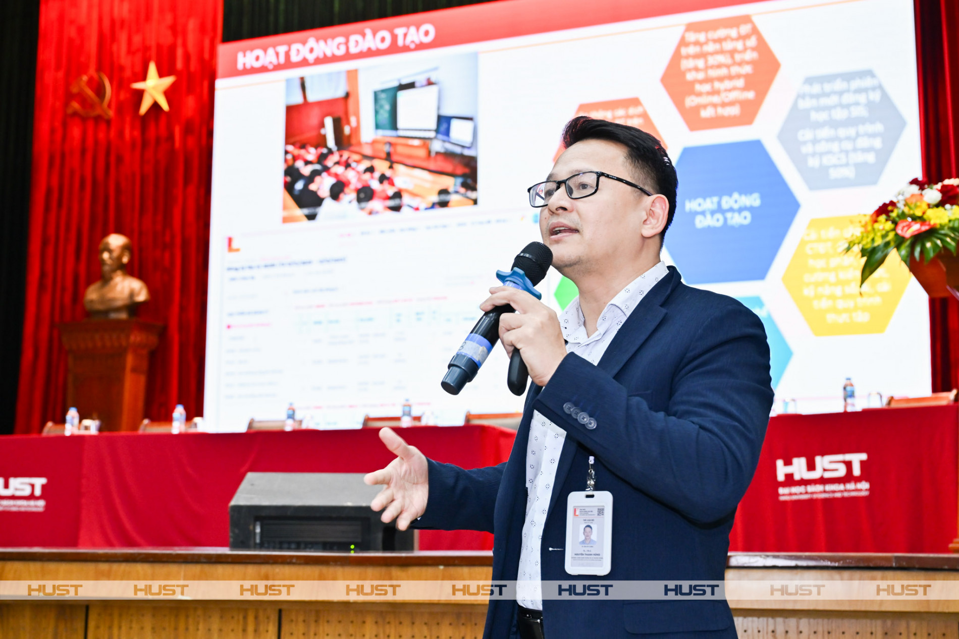 Tại hội nghị, TS. Nguyễn Thanh Hùng – Trưởng Ban Đào tạo trao đổi về những cải tiến nổi bật trong hoạt động đào tạo năm 2025 và phương hướng triển khai trong năm 2026. Theo đó, công tác đào tạo của Đại học Bách khoa Hà Nội đang chuyển động theo hướng số hóa, linh hoạt và lấy người học làm trung tâm, thể hiện sự nỗ lực đồng bộ của Nhà trường trong việc đáp ứng yêu cầu học tập ngày càng đa dạng của sinh viên.