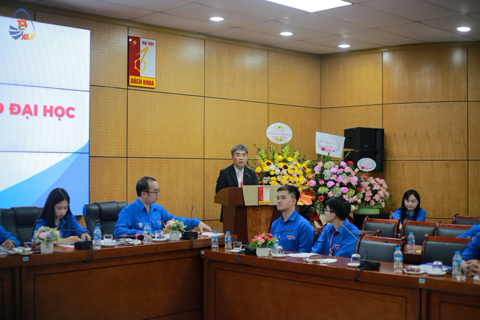 Đại diện cho Ban lãnh đạo Đại học, PGS. Huỳnh Đăng Chính - Phó Giám đốc Đại học Bách khoa Hà Nội gửi lời chúc mừng và đánh giá cao những nỗ lực của tổ chức Đoàn trong thời gian qua đã tạo ra nhiều phong trào thiết thực của sinh viên, vì sinh viên và khơi dậy khát vọng cống hiến trong sinh viên.