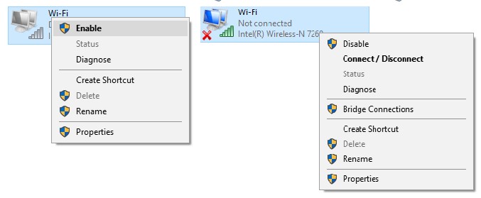 ( Đối với laptop có thể “Disable” sau đó “Enable” card mạng và kết nối lại)