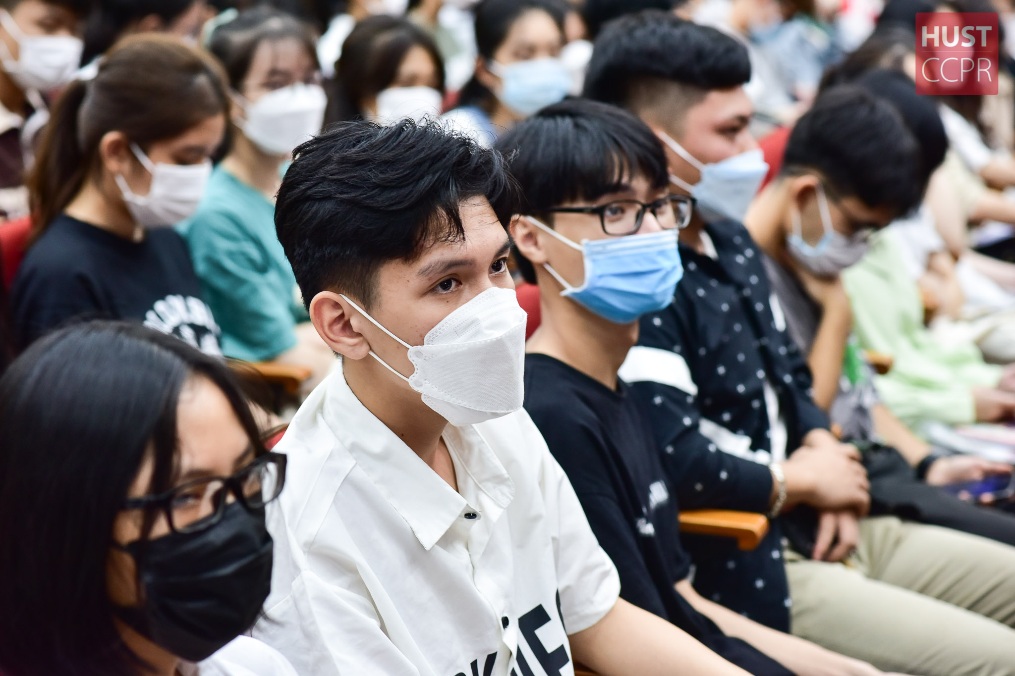 Hòa chung với không khí đông vui buổi sinh hoạt đầu khóa, Hội trường C2 với 1000 chỗ ngồi đã chật kín, thậm chí, sinh viên đến Trường phải tham dự trực tuyến tại phòng hội thảo C2.