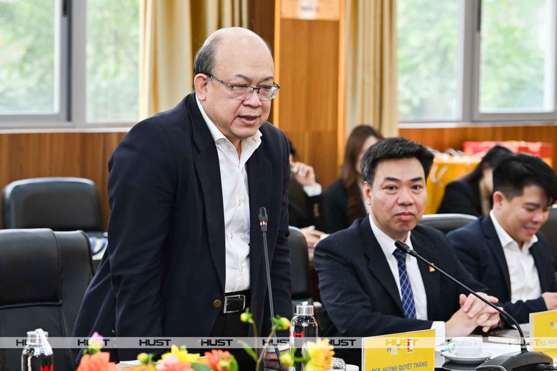 Ông Nguyễn Đình Lâm - Chủ tịch HĐQT PVcomBank bày tỏ mong muốn tham gia hợp tác với ADB, phân tích vốn, đàm phán, mua bảo hiểm, các khoản vay bắc cầu,… dự án phân hiệu Đại học Bách khoa Hà Nội tại Hưng Yên.