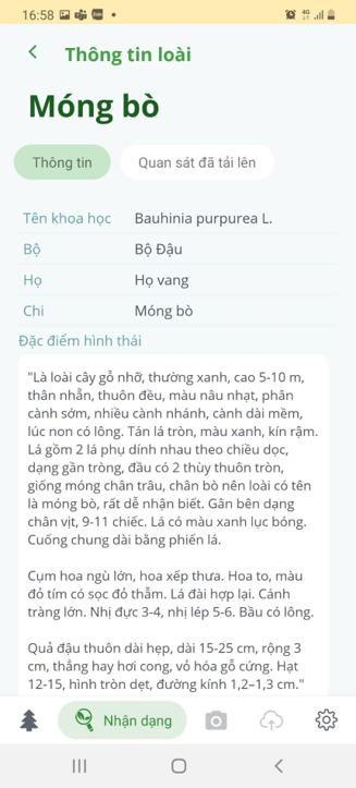 Cơ sở dữ liệu về hơn 100 loài thực vật tại Việt Nam, mô đun quản lý thông tin thực vật, mô đun nhận dạng thực vật dựa trên trí tuệ nhân tạo. Hệ thống cho phép quản lý thông tin về thực vật (bộ, họ chi loài), thông tin vườn quốc gia. Cho phép người dùng tham gia đóng góp CSDL hình ảnh và tìm kiếm thực vật dựa trên hình ảnh và từ khóa.