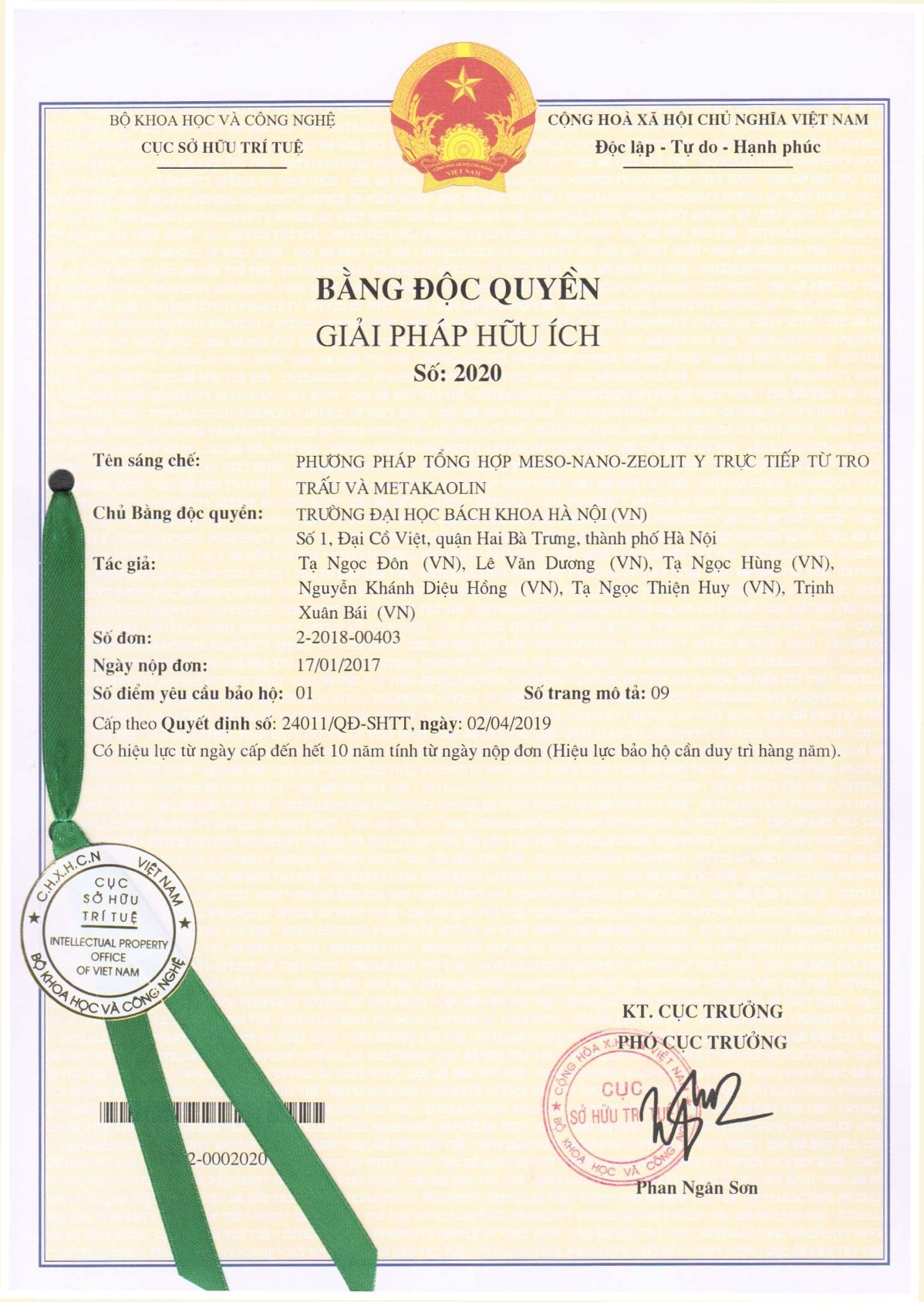 Ngày cấp: 02/04/2019