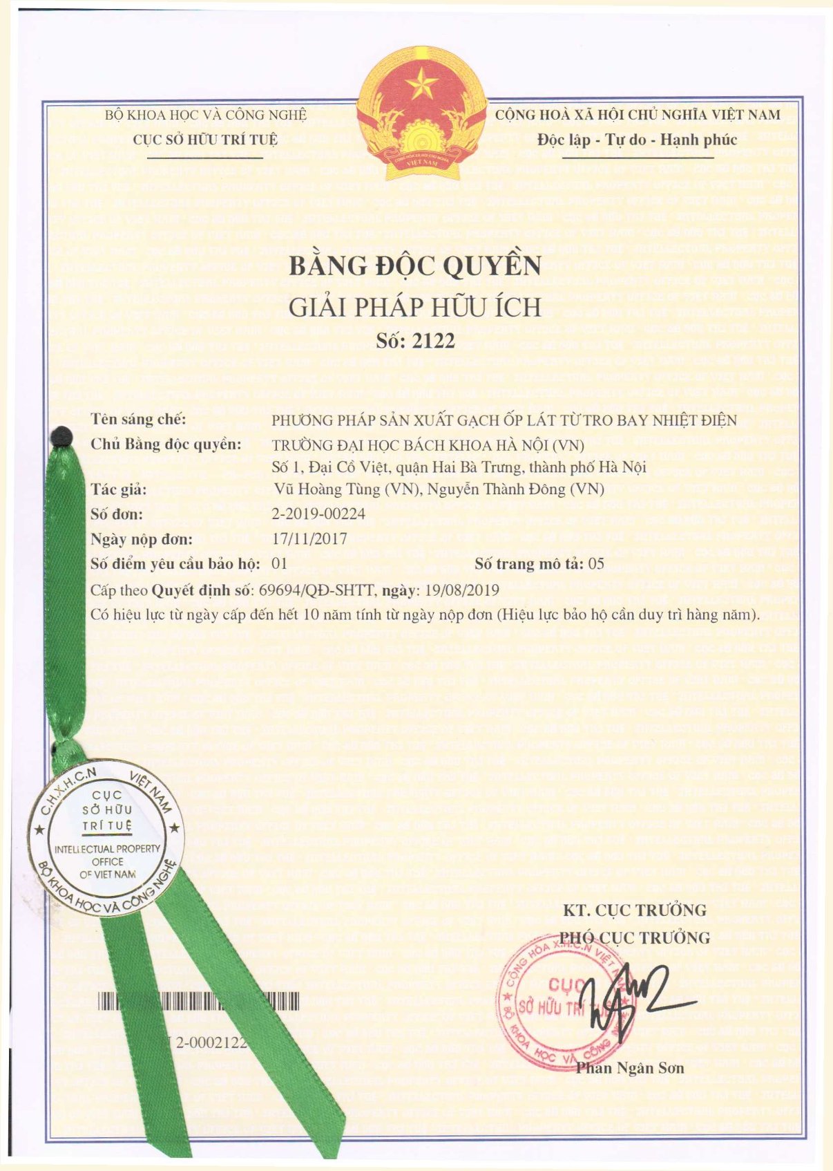 Tóm tắt: Sáng chế đề cập đến phương pháp sản xuất gạch ốp lát từ tro bay nhiệt điện bao gồm các bước: