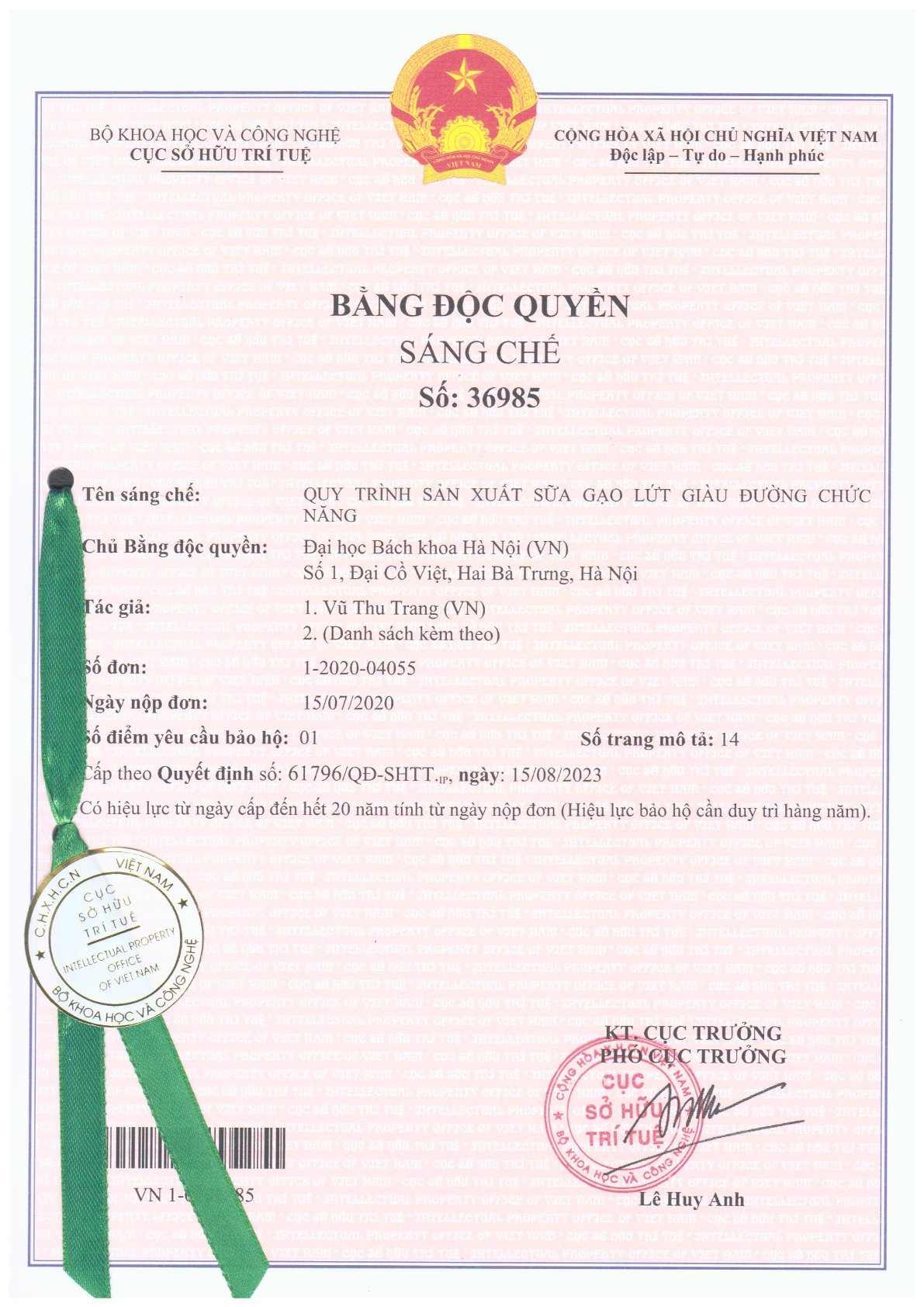Tóm tắt: Sáng chế đề cập đến quy trình sản xuất sữa gạo lứt giàu đường chức năng trong đó quy trình bao gồm: hòa bột gạo lứt (≤125µm) với nước ấm 40-45°C theo tỷ lệ 1:4; dịch hóa hai bước ở 65°C, 5 phút và 80-83°C, 30 phút với sự hỗ trợ của hệ alpha-amylaza và beta-glucanaza; dịch sau thủy phân giàu oligosacarit chức năng được ly tâm liên tục tách bã, phối trộn tiêu chuẩn hóa với đường chức năng isomalto-oligosacarit và protein gạo trước khi đồng hóa, tiệt trùng UHT (139-140°C, 10 giây) và bao gói vô trùng. Hiệu suất thủy phân đạt 90%, hiệu suất thu hồi đạt 70%, sản phẩm không chứa các chất gây dị ứng và bất dung nạp, thích hợp với mọi đối tượng tiêu dùng.